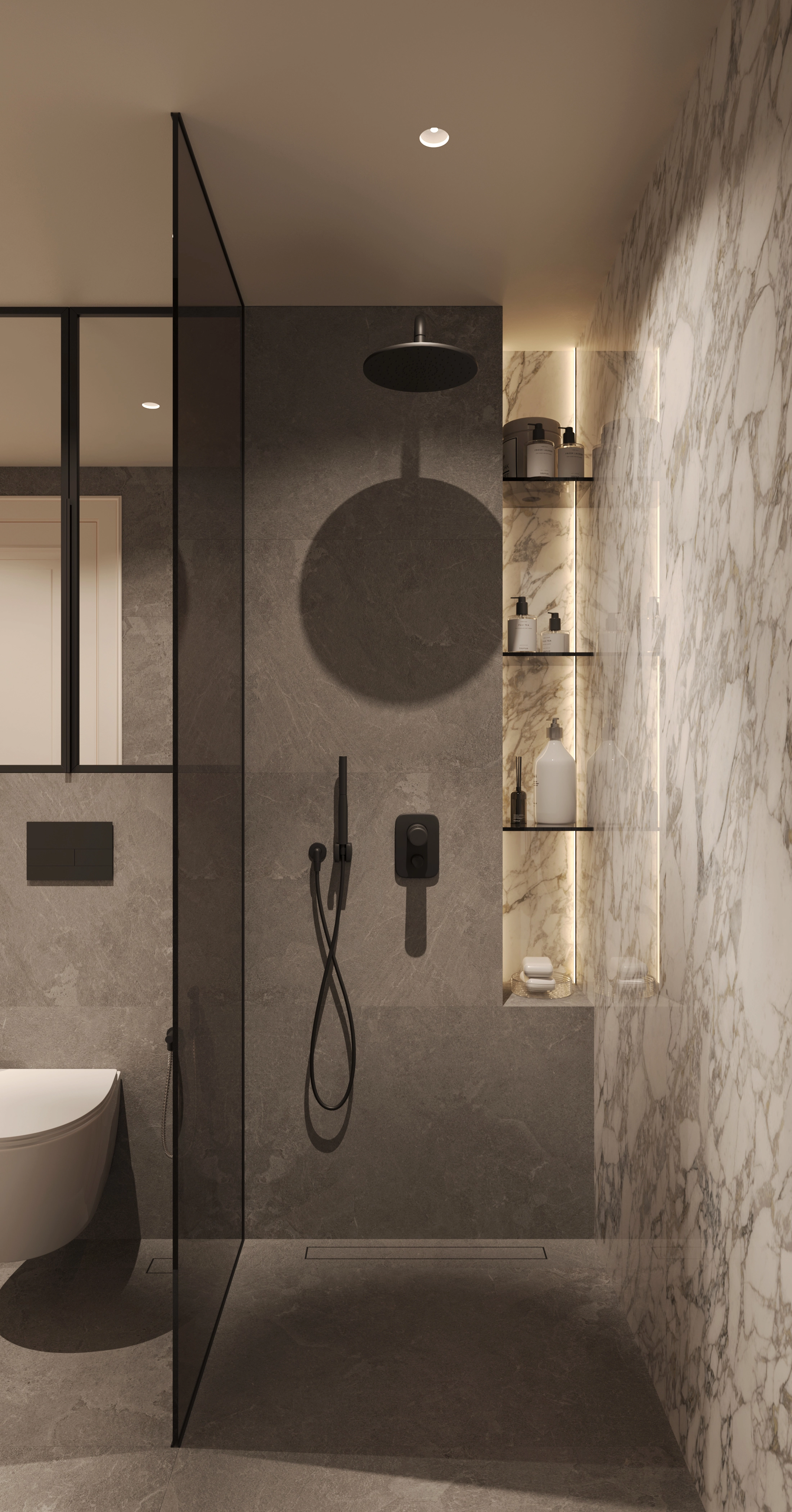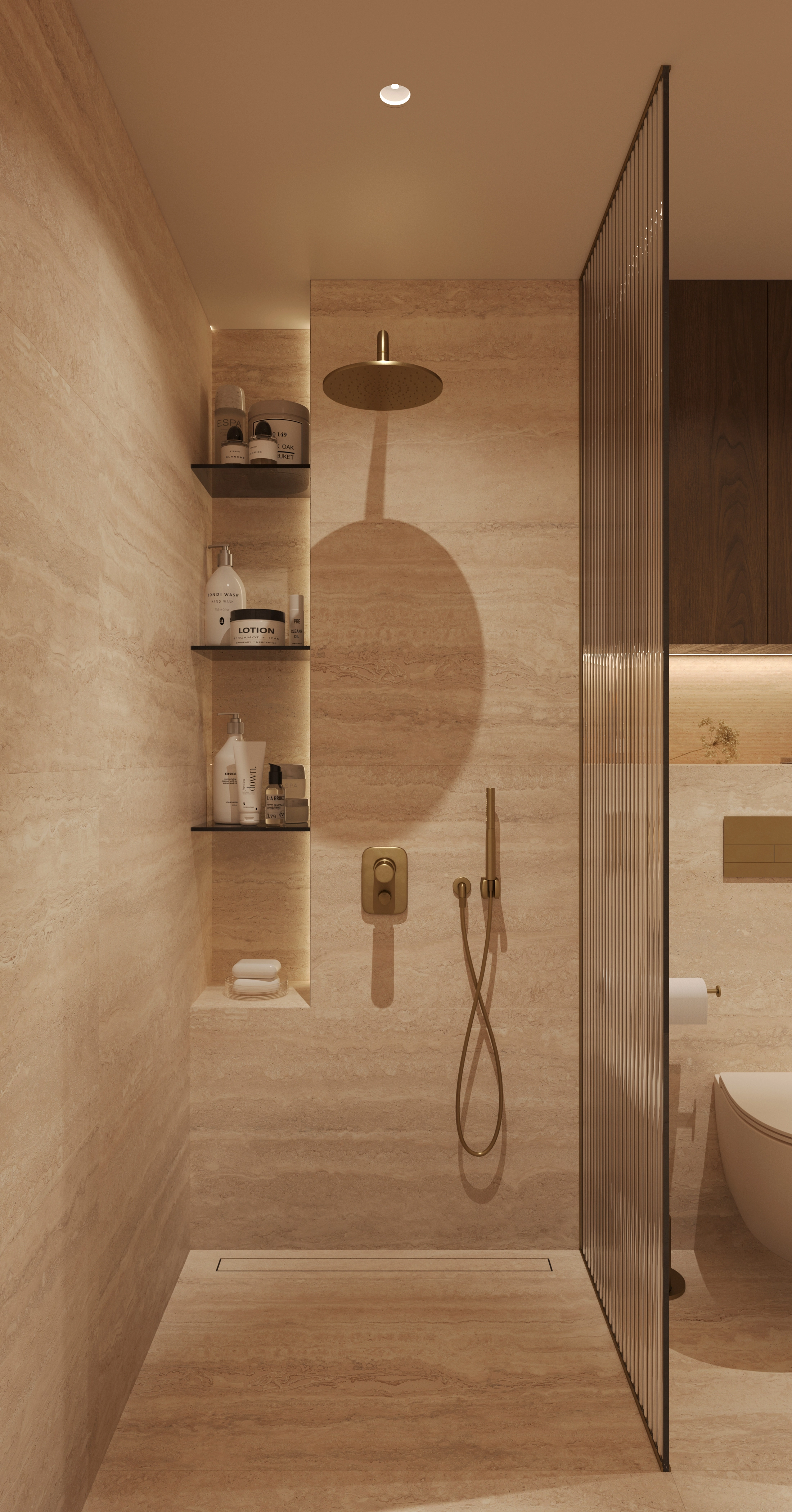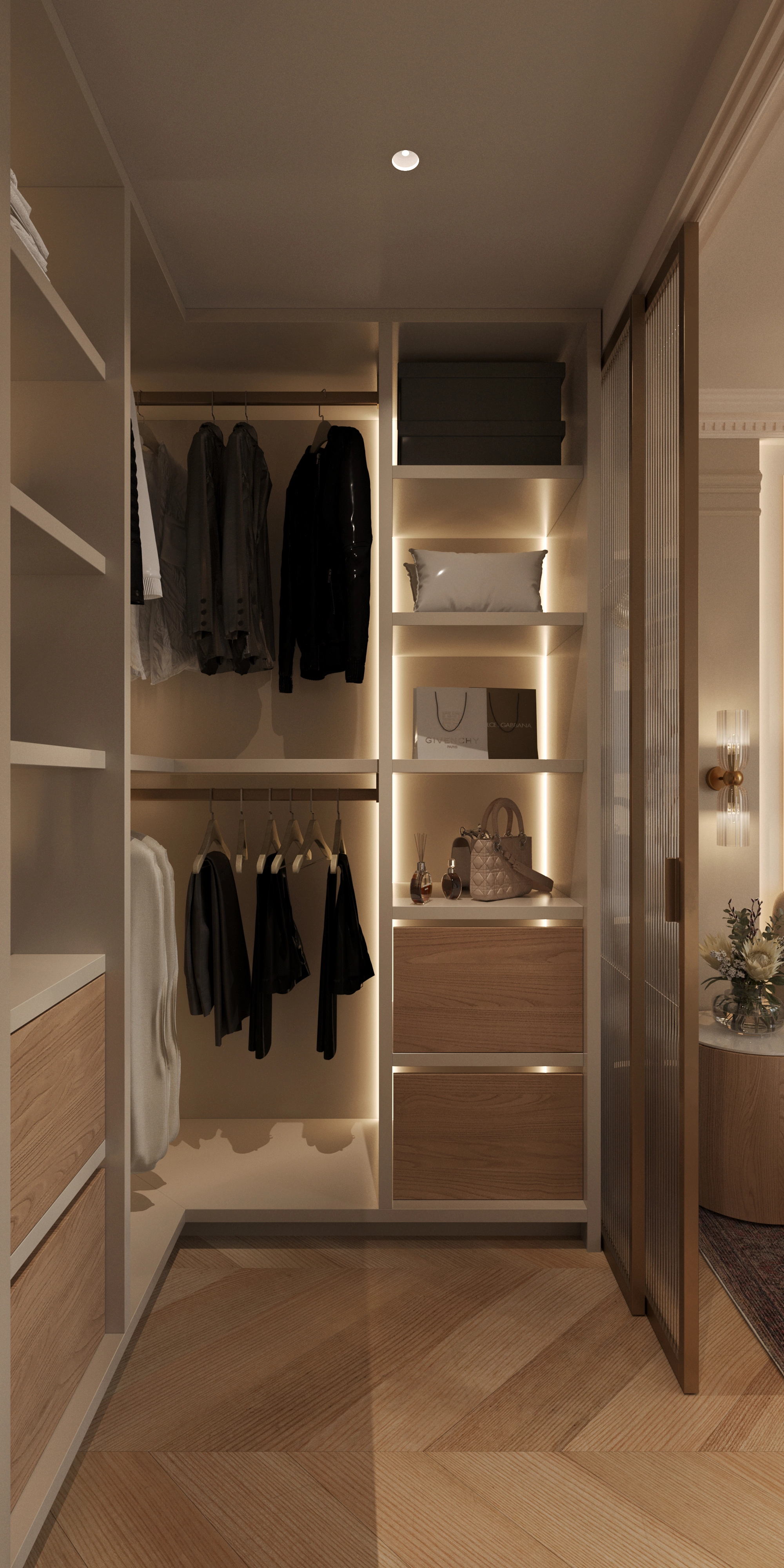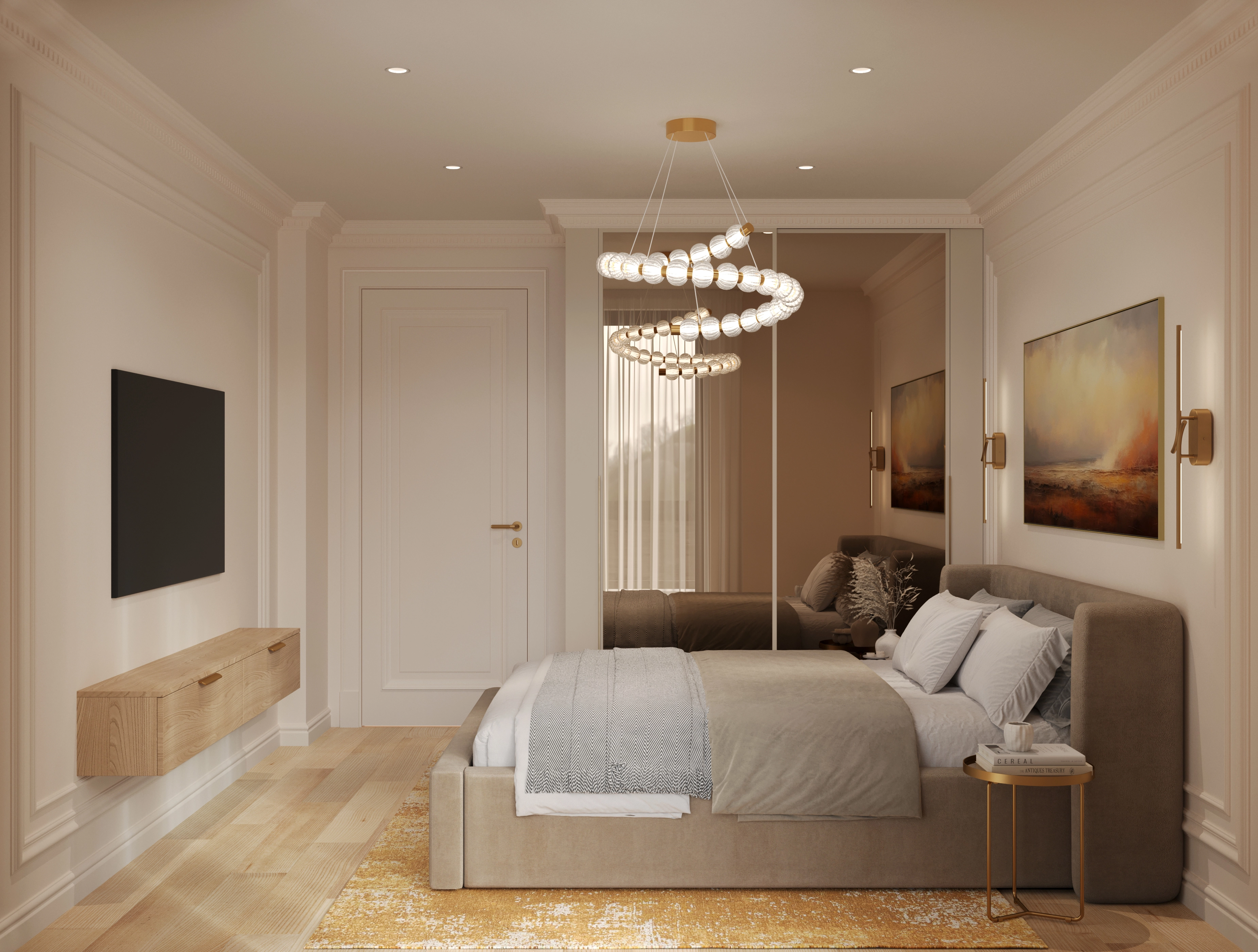We challenged the conventions of the luxury style by blending its typical glossy opulence and neoclassical elements with light, warm tones and materials. The goal was to soften the heavy impact of the usual ornamented excess, and to create an overall feeling of comfort. We set out to keep the premium feel and quality, while removing everything unnecessary.