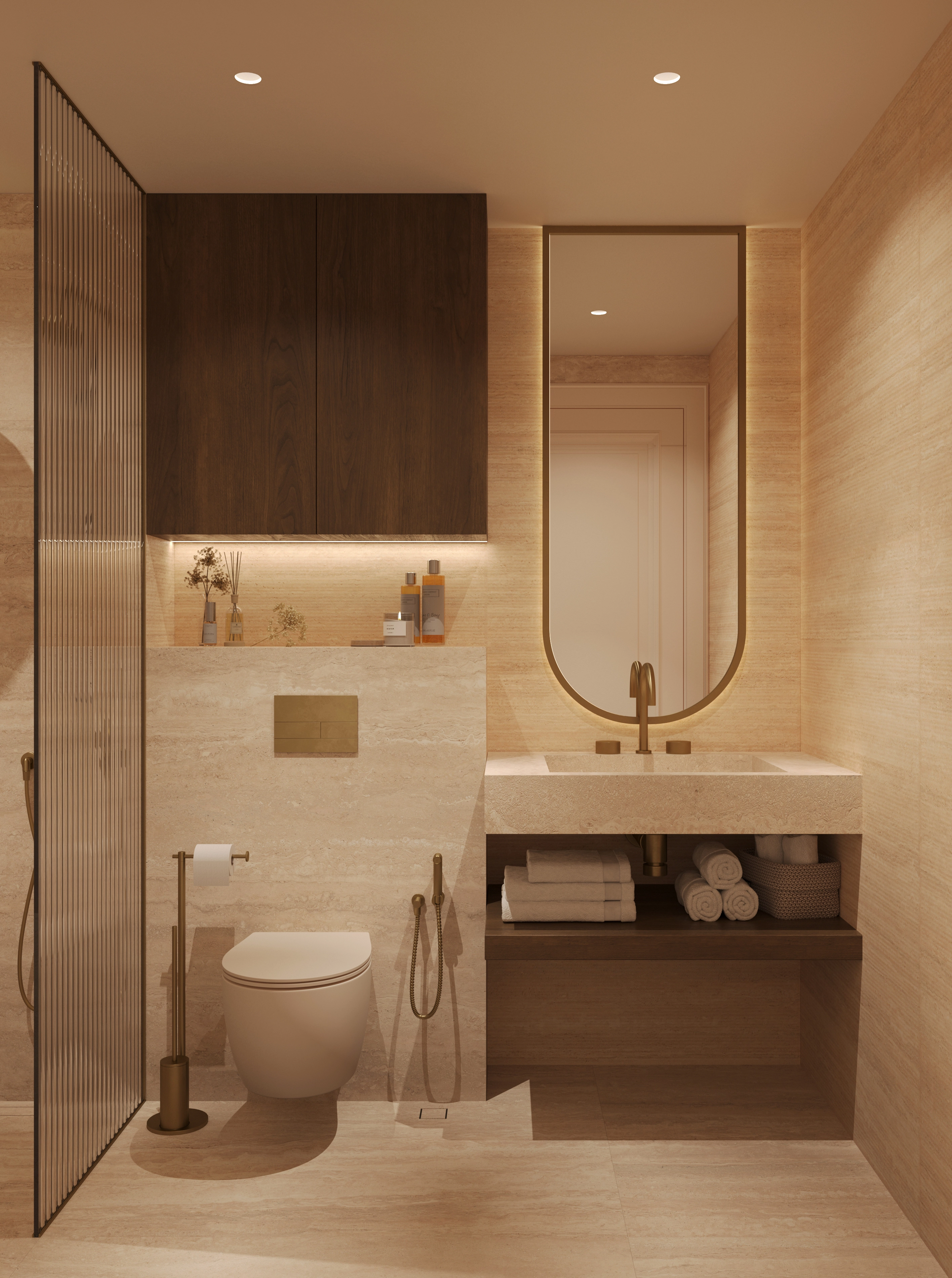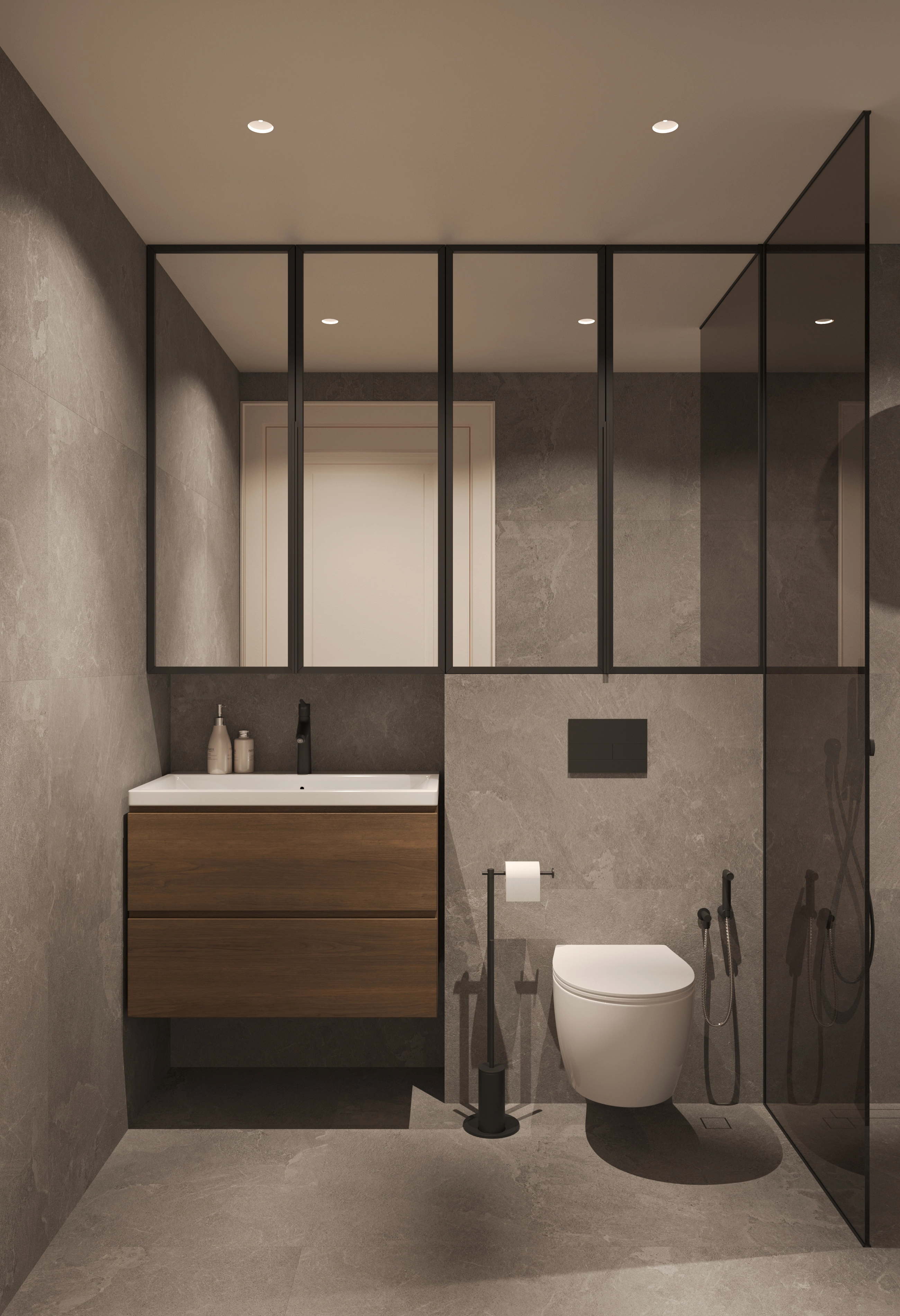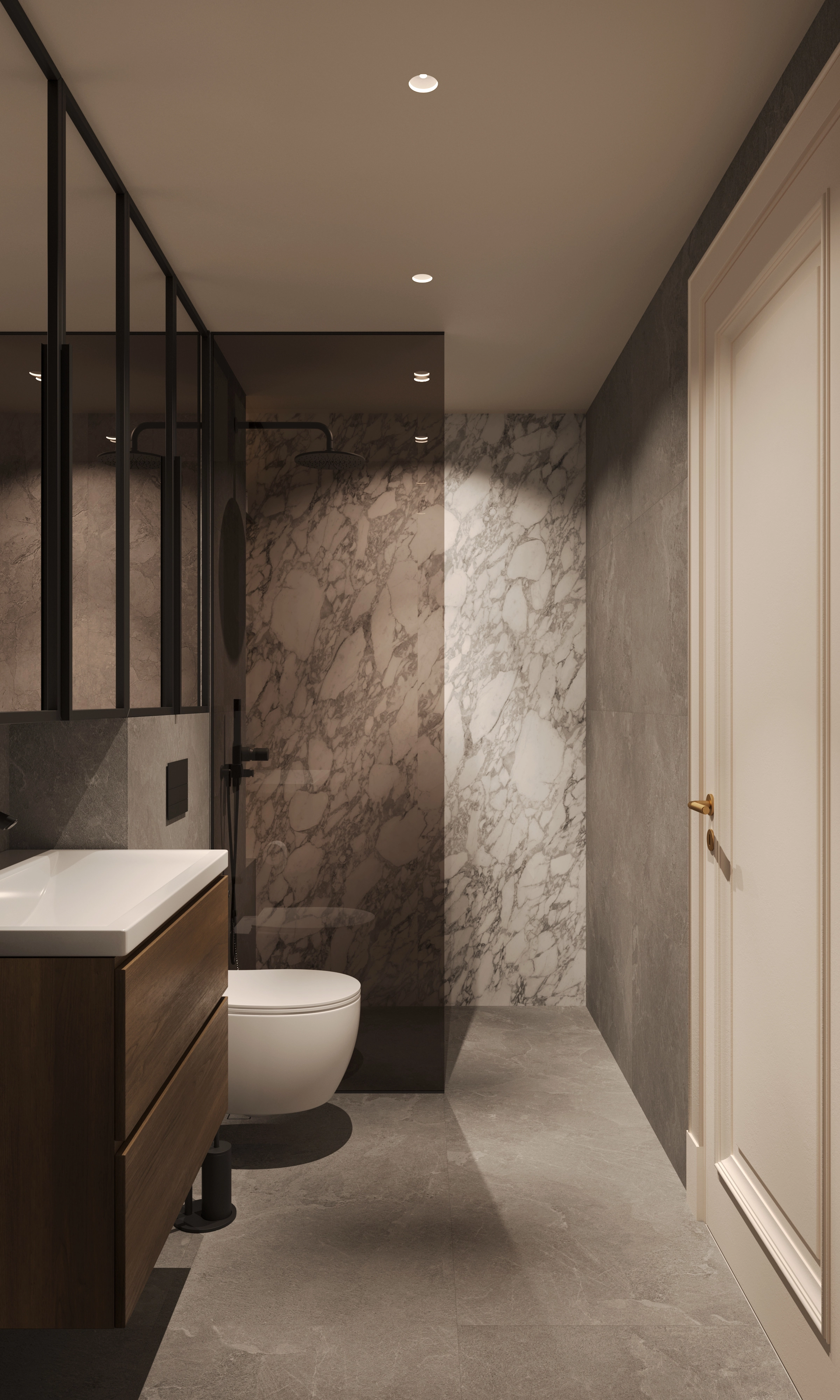 The addition of wooden materials and brown-beige colour pallette brings warmth and comfort. The